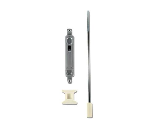 The KROM-FB03C28 is an aluminum (C28) spring loaded lever action flush bolt for use on commercial storefront and architectural aluminum and glass narrow stile doors. It features a rod extension with a 7/8″ throw and a 3/4″ backset. The rod length offers up to 5/8″ of adjustment. The face plate measures 15/16″ × 4-1/2″ and has 5/32″ radius corners. A 1/2″ square nylon tip with beveled corners helps prevent binding. The unit is supplied with a nylon keeper and fasteners.